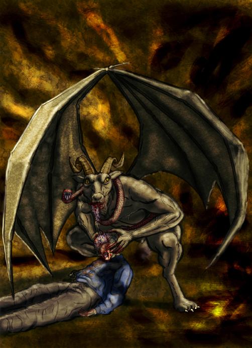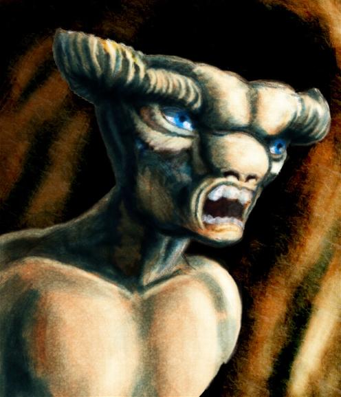 The brain-eating demon, GURNGUL. " A horned goat-headed creature with extended canine muzzle and sharp teeth."